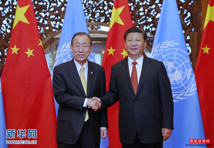 習近平歡迎潘基文秘書長第十次訪華,并積極評價潘基文擔任聯合國秘書長10年來為維護世界和平、促進國際社會可持續發展、應對氣候變化等全球性挑戰所作努力,為加強聯合國同中國合作所作貢獻。習近平指出,當前中國同聯合國合作不斷深化。作為聯合國安理會常任理事國和最大的發展中國家,中國將繼續做聯合國的堅定支持者、維護者、參與者。