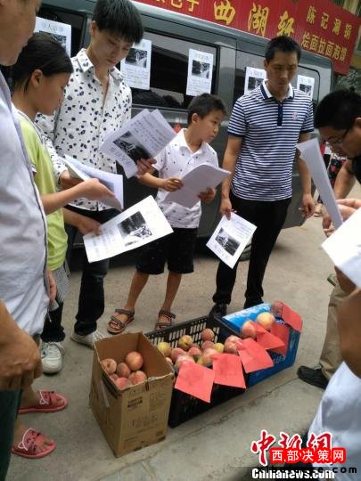 陳國西“贈桃尋妻”的舉動引來不少路人幫忙散發尋人啟事。韓章云 攝
