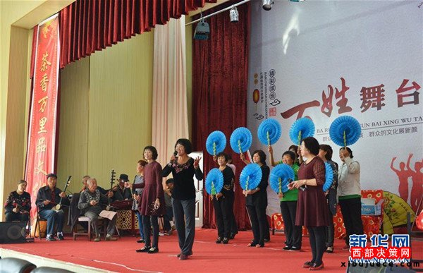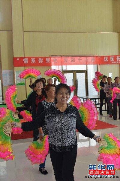 準格爾旗巴潤哈岱村村民在村里的文化活動室表演自導自演的節目(9月24日攝)。