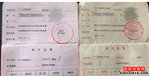 查詢得知:以上村名均在2009年11月3日,由村上統一在黃家灣信用社代辦‘一卡通’賬戶(為了方便惠農資金及時發放);但黃家灣信用社職工席某查詢明細是從2010年5月份起至2012年底,之后(一卡通)賬戶沒進過任何惠農資金;2014年12份張承根的‘一卡通’賬戶神奇般復活,再次打進惠農資金。