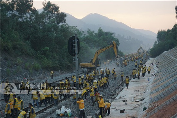 玉林市高鐵開通問題一直以來備受關注。12日,記者從南寧鐵路局了解到:10月11日凌晨,經過2300多名鐵路施工人員5個多小時的連續作業,黎湛鐵路電氣化改造工程貴港(根竹)至玉林段最后一處線路撥接施工順利完成。至此,該線路涉及的52處線路撥接改造全部完成,為今年底線路開通奠定了重要基礎。