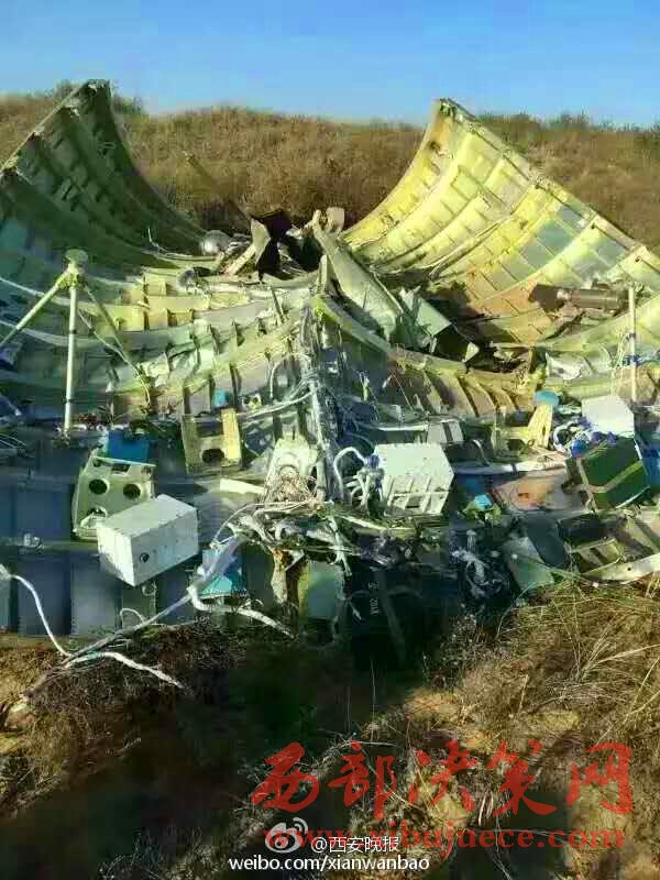 神舟十一號載人飛船在今天(17日)在酒泉衛星發射中心,由長征二號F遙十一運載火箭搭載兩名航天員發射升空,發射取得圓滿成功,其分離的整流罩在榆林市榆陽區大河塔鎮云化綠能廠區東南方向找到。