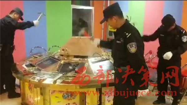 16時整,城關公安分局治安管理一大隊的警員沖進幻影游藝城,當場控制各類參賭人員30余人、賭博管理人員十余人,查獲各類熊貓機、釣魚機、單挑機等涉賭機器72臺,繳獲賭資現金近五萬元。警員在履行執法手續后,對72臺涉賭機器進行現場銷毀,執法有序進行,未損壞其他無關設備設施。