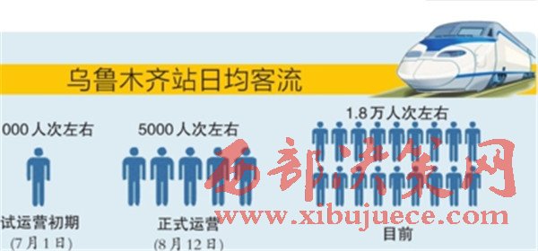 烏魯木齊站統計數據顯示,隨著始發終到列車增多、周邊公交線路增多以及知曉度提升,該站日均旅客發送量也由試運營初期的1000人次左右,到8月12日正式運營的5000人次左右,再穩步增加到目前的1.8萬人次左右。