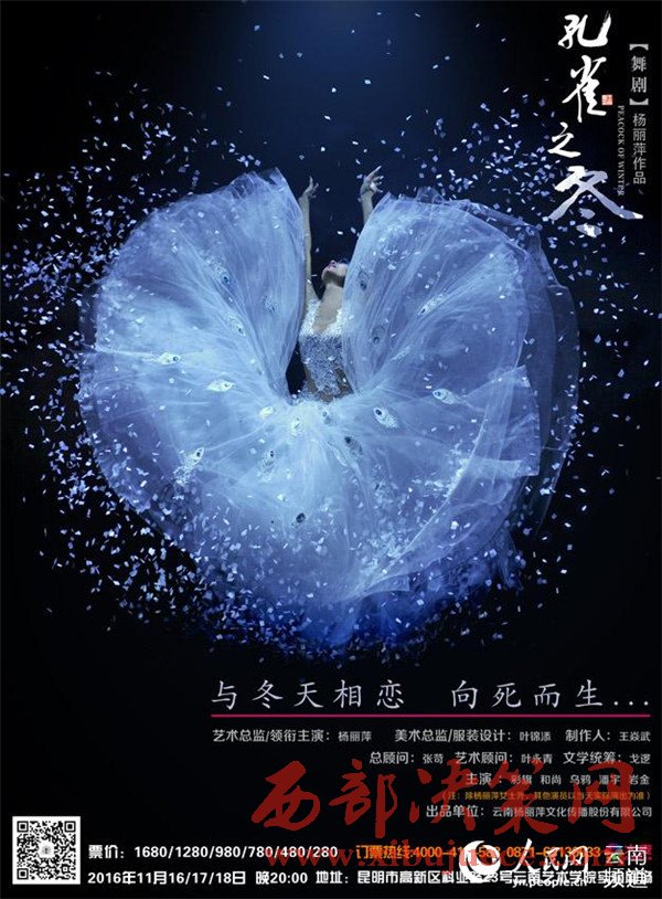 10月25日,由楊麗萍領(lǐng)銜主演并擔(dān)任藝術(shù)總監(jiān)的舞劇《孔雀之冬》在中航·璽樾舉行全球發(fā)布會(huì)。《孔雀之冬》將于11月16日至18日在云南藝術(shù)學(xué)院實(shí)驗(yàn)劇場(chǎng)(麻園)進(jìn)行公演,拉開(kāi)全國(guó)巡演的序幕。時(shí)隔4年,在2012版舞劇《孔雀》之后,舞神楊麗萍將再次起舞。