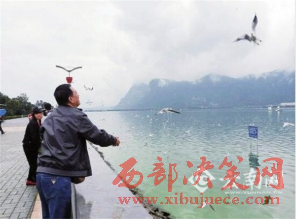 在海埂大壩邊上,記者看到200余只紅嘴鷗出現在這里,靠近岸邊從游客手中覓食,而游客投喂的是面包,這里還沒有鷗糧出售。負責海埂大壩管理的有關人士說:“我們設有觀察員,今天紅嘴鷗首次靠岸,下周開始,我們將推出鷗糧銷售。”