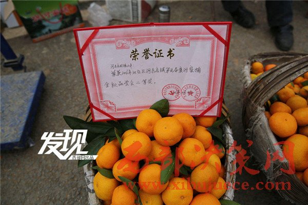 張小平家的橘子在鎮上舉行的褒河蜜橘金秋品嘗會獲得二等獎,張小平把獎狀擺在了他的橘子攤上。張小平說,他家有6畝橘園,收入6萬元不成問題。