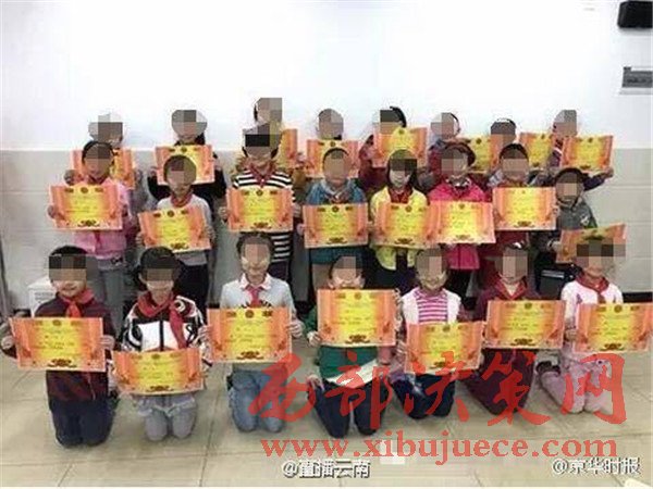 昨天有微博爆料,云南省昆明市盤龍區東莊小學獲獎學生合照中,7名學生手持獎狀跪在地上。圖片引發網友爭議。該校校長回應稱,照片為領獎后在辦公室內拍攝,受空間限制,部分學生跪地。昆明市盤龍區教育局則表示,已收到學校報告,之后會提出處理意見。