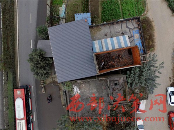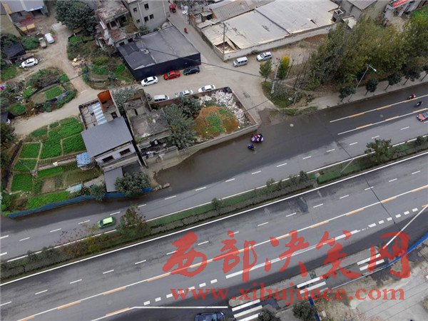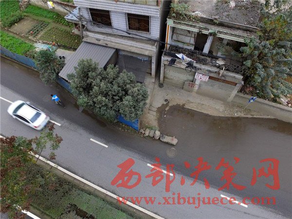 這棟房子屋前的院壩、自留地占據(jù)了進(jìn)方向的兩條車道。2008年擴(kuò)建這條路之前,這棟民房就已經(jīng)立在這里,至今已有8年時(shí)間。