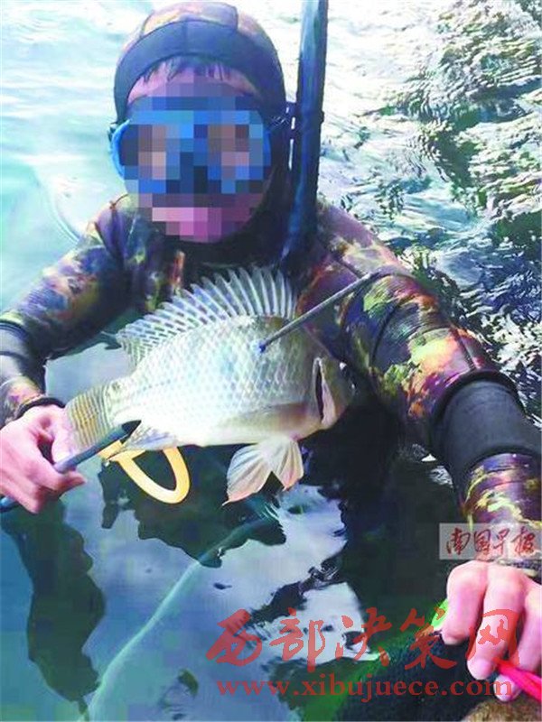 原來,前兩天網上流傳的身著迷彩潛水服男子并非真正的獵魚者。據當事男子介紹,11月20日下午2點左右,他與幾名潛友來到靈婉湖進行自由潛。他看到同行的潛友捕獵了一條長約1米的大魚。出于好奇,就拿起了這條魚來擺拍,可沒想到會造成這樣不好的影響,他對此感到懊悔和抱歉。