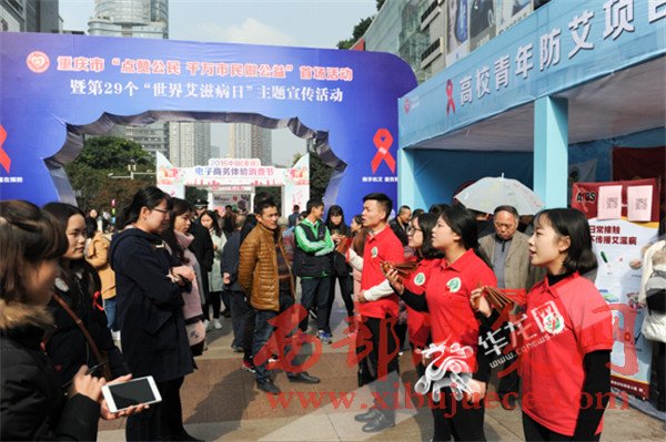 系上紅絲帶,關愛艾滋病患者。26日,在重慶市“點贊公民·千萬市民做公益”暨第29個“世界艾滋病日”主題實踐活動啟動儀式上,記者了解到,根據市衛計委提供的數據,截至10月31日,重慶報告現存活艾滋病病毒感染者和艾滋病病人31092例,其中艾滋病病毒感染者19792例,艾滋病病人11300例。