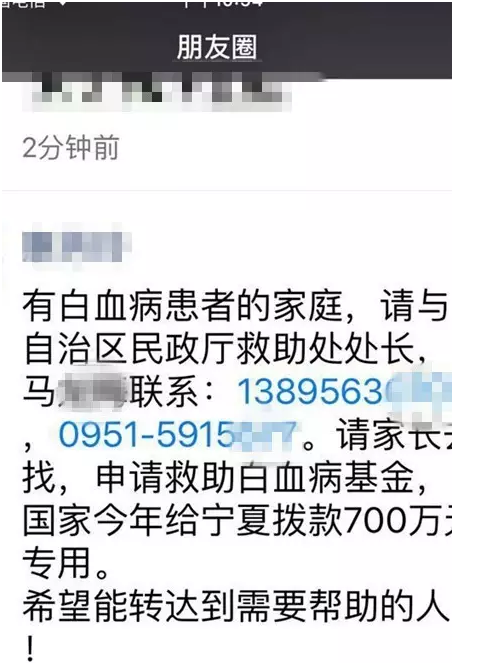 3日開始,該微信在多個朋友圈中刷屏,還公布了工作人員的手機,當天,多個網友撥打該手機申請或詢問是否能申請救助白血病基金。“剛開始還一頭霧水,后來看到了同事轉發給我的朋友圈截圖,才明白過來。”
