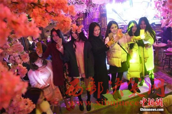 12月11日晚,重慶近百位網紅美女聚集在大坪時代天街一酒吧內舉行“網紅狂歡趴”。圖為網紅美女聚集一起玩自拍。