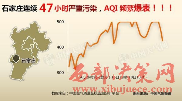 其中,從16日起,河北石家莊更是出現了連續47小時的嚴重污染,AQI指數頻繁“爆表”。