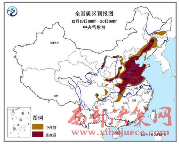 中央氣象臺預計,19日08時至20日08時,北京中南部、天津、河北中南部、山西中南部、山東大部、河南大部、陜西關中、湖北西部、蘇皖北部、遼寧中西部、吉林中部等地有中度霾,其中,北京南部、天津、河北中南部、河南中北部、山東大部、山西南部、陜西關中、湖北西部、蘇皖北部、遼寧中部、吉林中部等地的部分地區有重度霾,最低能見度為1公里左右。中央氣象臺12月19日06時繼續發布霾橙色預警。