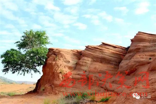 以閆寨子為中心,構成了丹霞地貌主景區,其紅色砂礫石的豐采神韻,美倫美奐,讓人享受的是一暮暮視覺盛宴。有網友稱,龍洲丹霞地貌可與美國亞利桑那州的波浪谷相媲美。