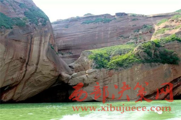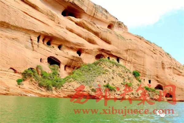 靖邊八景之一的“紅崖曉鏡”就在現在的水上丹霞的位置。靖邊縣志記載,“在杜家大臺兩岸,紅峽對峙,中留一線,曉日初升,恍是高樓仙境”。這里過去叫草溝灣,曾是水草豐美,水鳥棲息,水清如鏡,兩岸赤壁對峙,為靖邊的一大景觀。