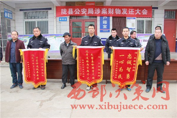 西部決策網訊(帥華鋒 杜杰 通訊員 邢亞洲)12月29日中午,隴縣公安局東南派出所召開贓物發還大會,為群眾發還現金44620元,群眾放起了鞭炮送來感謝信和錦旗表示感謝。。