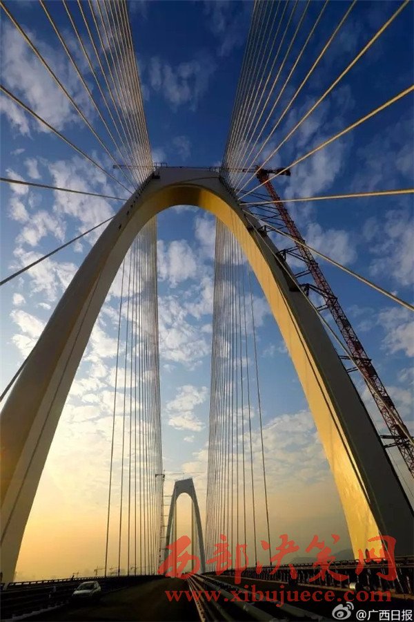 1月3日,主跨達430米的南寧市重點建設項目——青山大橋的橋面已完成鋪設。青山大橋被譽為“邕江最美跨江橋”,其主塔及主跨的長度,都是目前南寧市跨江橋之最,預計將在今年5月左右正式通車,到時候市區通往五象新區的交通將更為便捷。