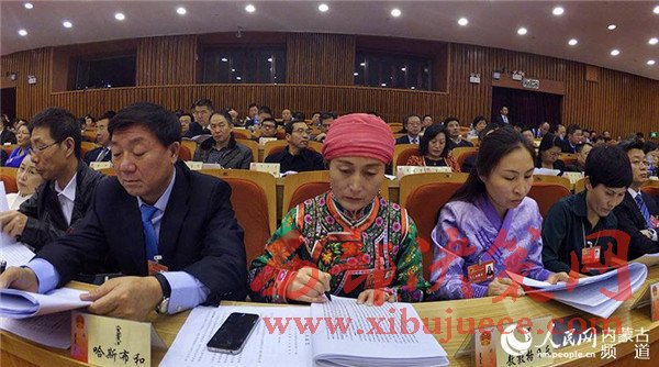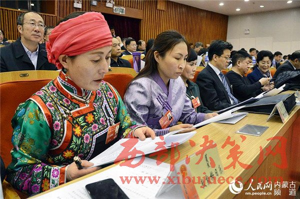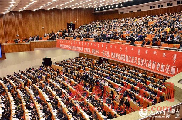 民主、團結(jié)、求實、奮進(jìn)。內(nèi)蒙古人民會堂格外莊嚴(yán),主席臺帷幕中央國徽高懸,會場氣氛隆重?zé)崃摇?/span>