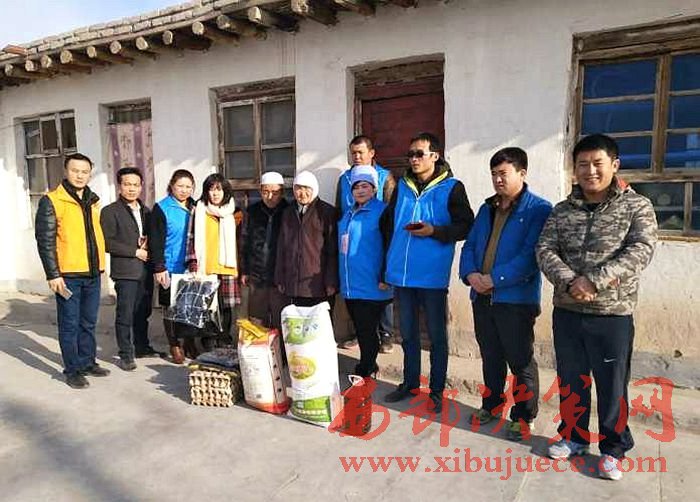 1月13日,寧夏海興義工聯合會銀川辦事處的工作人員來到銀川市賀蘭縣南梁臺子鐵東村、鐵西村,慰問當地8戶孤寡貧困家庭,捐贈米面油和棉衣等生活物品, “大娘,還有半個月就過年了,這是咱們企業的一點心意,祝您老身體健康,吉祥如意”。這次慰問空巢老人和貧困家庭的單位有:銀川培訓學院、銀川美年大健康體檢醫院、海原馬軍飯莊、搏港旅游公司、寧夏雙玉農業科技有限公司、寧夏塞杞源苗木專業合作社。今年年初,他們根據南梁臺子鄉提供的貧困戶名單,結合入戶走訪,最終確定了馬寶林、馬萍霞等8戶殘疾、孤寡貧困家庭。由寧夏蕊杰伯港旅游有限公司、 銀川美年大健康體檢醫院等7家協會成員企業共同出資購買生活物品,逐戶慰問,反哺社會。