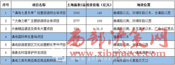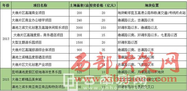 資料顯示,大漁片區位于滇池東岸,面積25平方公里,約37500畝。根據昆明滇池旅游度假區信息,大漁片區2016年共7個項目統一招商,總占地面積9997.7畝,總投資額預計約353.6億元。意味著本次大批量招商項目供地所占土地比例幾近于大漁片區總面積的三分之一,如此大規模的土地供應量和投資額,如果最終招商仍然無果,那么大漁片區大量土地“待嫁”的現狀暫時難以改變。