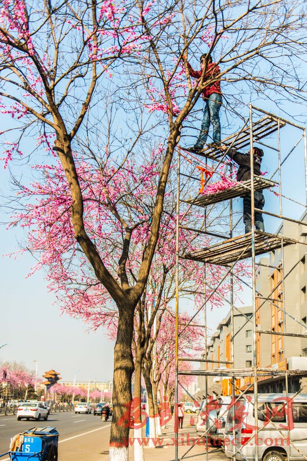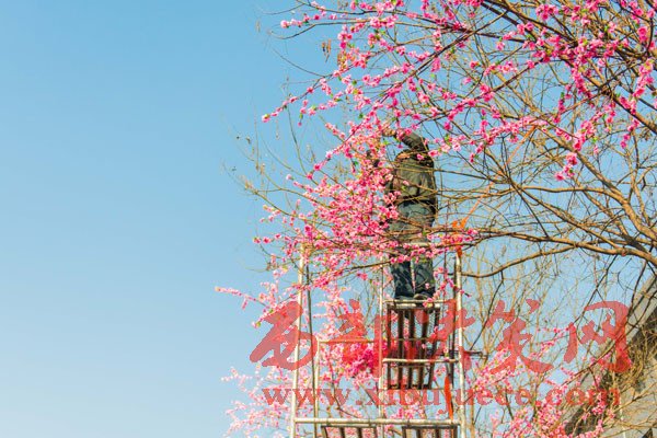 1月16日,在呼和浩特市大南街,工人們正在安裝花燈。農歷丁酉年(雞年)春節即將到來,首府處處年味十足,扮靚城市。