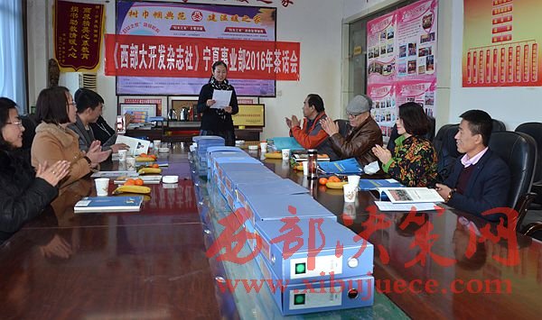 西部決策網(wǎng)訊 1月20日下午,西部大開(kāi)發(fā)雜志社寧夏事業(yè)部2016年年終茶話(huà)會(huì)在銀川舉行。來(lái)自銀川電視臺(tái)、書(shū)法協(xié)會(huì)、演出協(xié)會(huì)等單位的代表們與本社寧夏事業(yè)部的工作人員匯聚一堂,為西部大開(kāi)發(fā)雜志社寧夏事業(yè)部的發(fā)展建言獻(xiàn)策。
