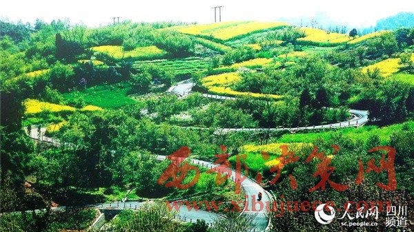 在花海中蜿蜒盤旋的賞花道路。(圖片由崇州市委宣傳部提供)