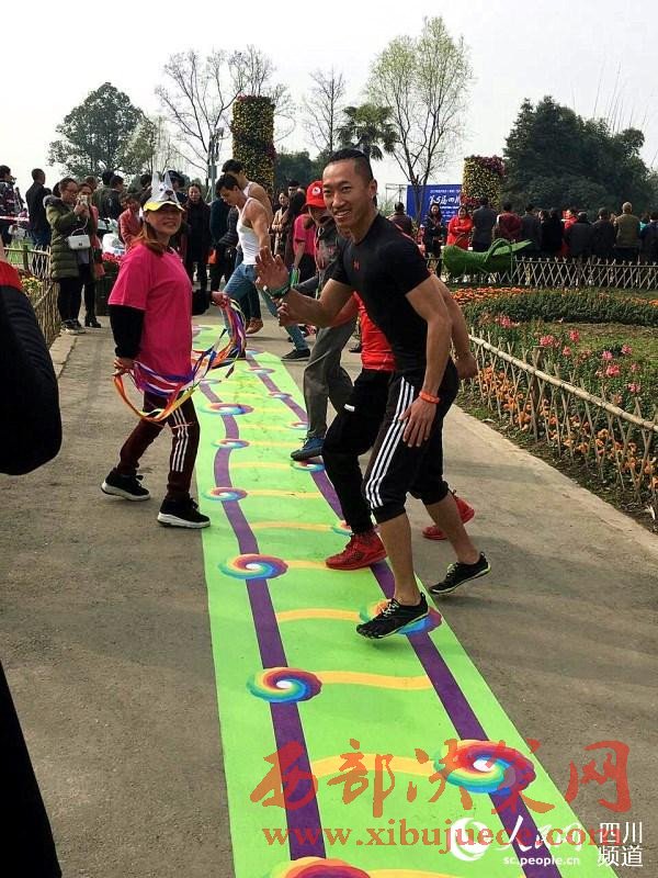 2017年四川花卉(果類)生態(tài)旅游節(jié)分會場暨第五屆四川自駕賞花節(jié)今日在成都崇州市榿木河濕地公園開幕。開幕式現(xiàn)場,近千人參加了“五彩飛揚(yáng)健步走”活動,盡享濕地春日明媚花海。