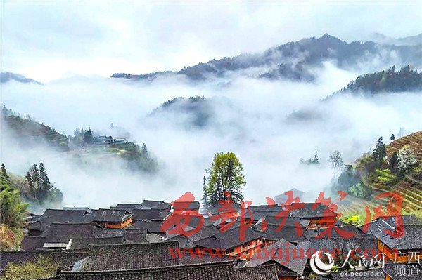 廣西各族小寨村雨后云霧繚繞 宛如美麗的水墨畫