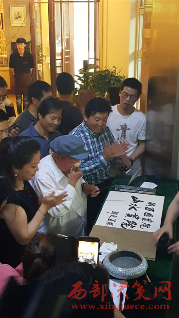 當李老師談起書法來,兩眼炯炯有神,自放異彩,書法已融入他的生命。當我們走進李老師的工作室,練習的作品如一座小山,筆架上的毛筆各種型號應有盡有,裝墨汁的缽盂,很是夸張,不敢說墨池,那樣有點浮夸,有點像關中人吃面的老碗那樣大的缽盂。沒有上過大學的他,也許是對傳統文化的摯愛,也許是身邊的朋友影響了他。