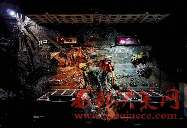 這是航拍的包頭市北只圖村向陽小區爆炸事故救援現場(3月25日攝)