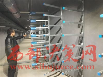這個寬5、6米,高10多米的地下綜合管廊艙左側架設了一層層電纜支架、右側則是一條直徑約1米的藍色管道。工作人員介紹,這些支架是用來架設各類電纜線的,而那條藍色管道是排污水管。管廊頂部還設置了排氣設施,那是用來防潮的。據了解,目前,地下管廊一期主體結構16公里已完工,學院路、高教路南段、毛勝寺路雨污水艙已投入使用。