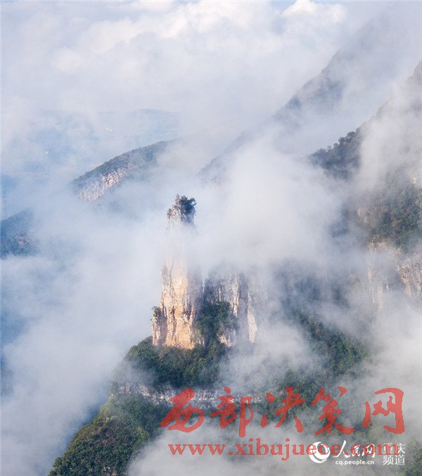 4月11日,巫山縣黃巖景區現云霧奇觀。