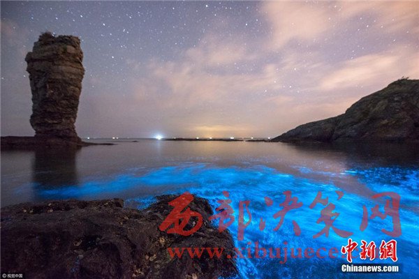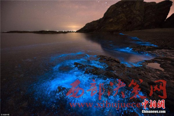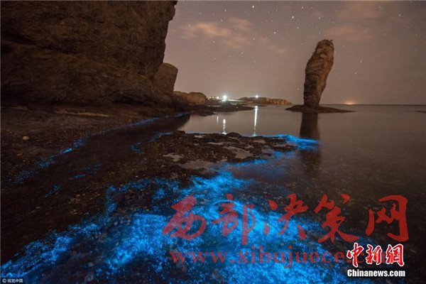 2017年4月27日凌晨,大連小黑石海域又現“熒光海”奇觀。(圖片來源:視覺中國)
