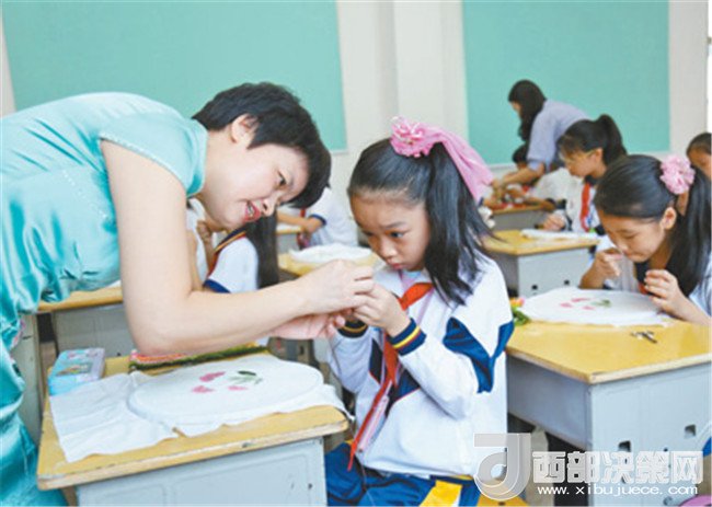 國家級非遺潮繡,技藝精湛、美不勝收。今年國慶后,在振德街小學校長金醉芳的邀請下,佘燕璇帶著女兒佘旭磊每周五下午到該校第二課堂免費開授1個小時的潮繡課。“沒想到報名很火爆,”最后在四五年級里形成了一個26人班。隨后,佘燕璇又在潮安區東鳳鎮下張濬智學校開了個30人的全免費教學班。金醉芳坦言,“我們請潮繡走進校園,不單是興趣培養,更是文化傳承。我們要讓潮州文化在孩子們的心靈里播種、生根、發芽。”