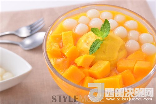 原料:芒果、小湯圓、冰淇凌奶磚、牛奶。