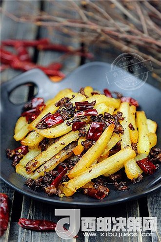 第五步:煸炒至土豆表面焦黃時(shí)控油盛出。