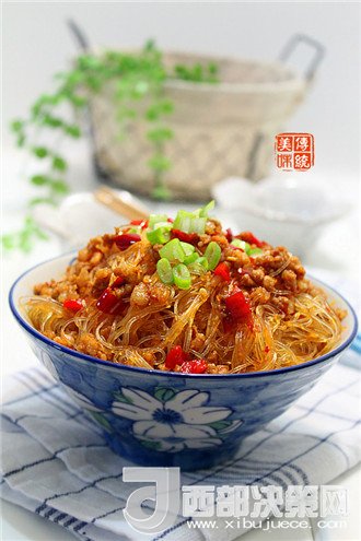 細(xì)碎酥香的肉末粘在粉絲上,尤如螞蟻爬在樹上,所以得名“螞蟻上樹”,名字很形象也很有趣。這道菜粉絲油亮誘人、口感柔軟滑嫩、肉沫酥香、風(fēng)味別致,是一道非常有名的家常菜。做法也簡(jiǎn)單,主料只有肉末和粉絲,很適合居家制作。