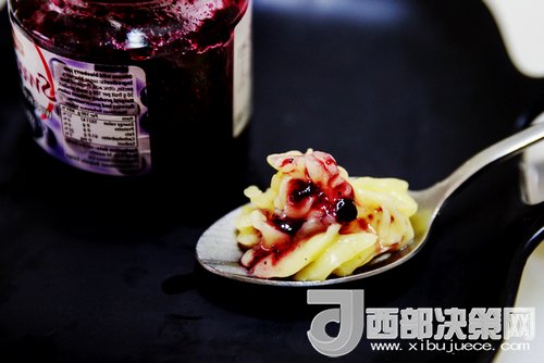 食材:土豆、濃縮雞汁、黃油、藍莓醬、黑胡椒。