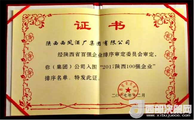 “陜西百強企業”榮譽的獲得,是西鳳集團堅持“酒業為主,多業經營”的發展戰略,科學應對行業調整,以中國西鳳酒城建設為信托,積極實施“一體兩翼”產業布局,奮力追趕超越,大力推進資本社會化,不斷提升西鳳品牌影響力的結果。西鳳集團將高舉鳳香型旗幟,以內涵式發展和外延式擴張相結合的方式,大力提升企業核心競爭力,努力把西鳳集團建成市場競爭力強、經濟效益好的大型企業集團。