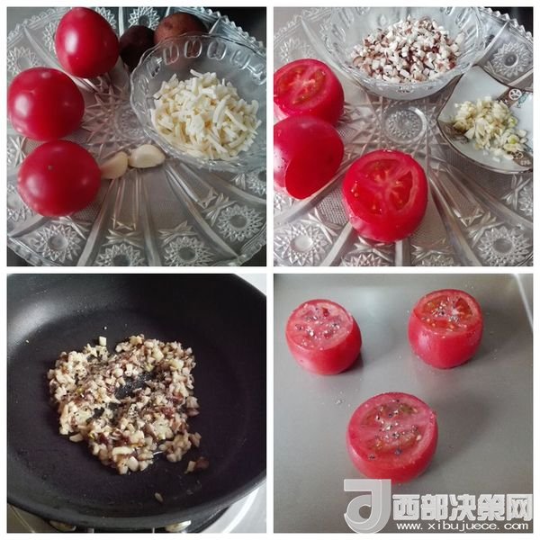 食材:西紅柿3個(gè),香菇2朵,蒜2瓣,鹽適量,黑胡椒碎適量,無味植物油首選,帕爾瑪干酪或馬蘇里拉奶酪適量。