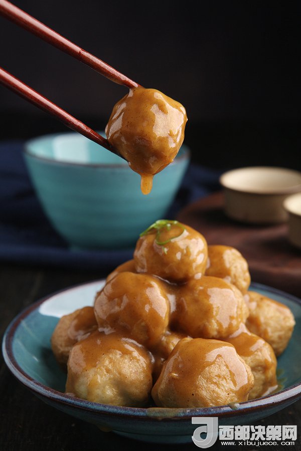1、加入咖喱塊后,醬汁會稠稠的,可以沾著魚丸吃或者拌飯都很棒。