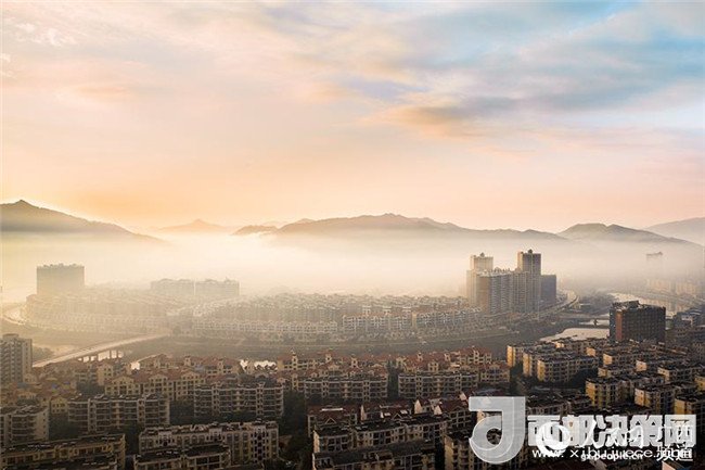 平流霧多發生在冬春冷暖交替的時節,是暖濕空氣平流到較冷的下墊面上,下部冷卻而形成的霧。平流霧和空氣的水平流動是分不開的。如果風停下來,暖濕空氣來源中斷,霧很快就會消散。平流霧能將城市中的建筑物“纏繞”其中,使身處地面的人們如臨仙境。(彭遠賀、黃國一、韋世仙)