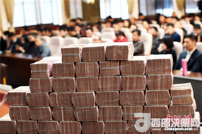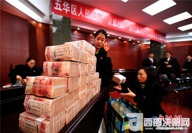 1月23日,發(fā)放現(xiàn)場法院工作人員在整理堆放的現(xiàn)金。當(dāng)日,在2018年春節(jié)臨近之際,昆明市五華法院“法威行動(dòng)”執(zhí)行案款暨司法救助金集中發(fā)放在五華法院進(jìn)行。共對107件涉民生、涉金融案件發(fā)放執(zhí)行案款約5000萬元,同時(shí)對13起執(zhí)行案件中的14名特困人員發(fā)放司法救助金346000元。此次集中發(fā)放案款暨司法救助金大會(huì),旨在彰顯司法的權(quán)威和司法的人文關(guān)懷,確保申請執(zhí)行人和特困人員的合法權(quán)益得到及時(shí)兌現(xiàn),讓民眾過上一個(gè)歡樂祥和的新春佳節(jié)。記者李進(jìn)紅攝