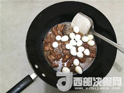 8.大概20分鐘后,放入食鹽,鵪鶉蛋繼續燒制。