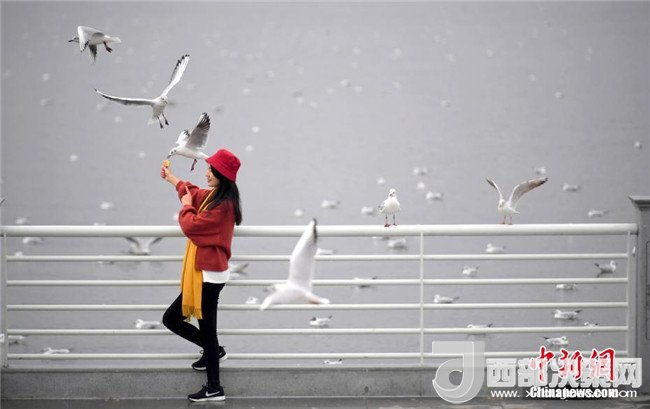 2月4日,一名女孩穿著厚厚的冬裝在昆明滇池邊給紅嘴鷗喂食。當日,受較強冷空氣影響,“春城”昆明最低氣溫下降至-3℃。天氣雖然寒冷,卻抵擋不住市民和游客前來滇池觀賞、喂食越冬紅嘴鷗的熱情。中新社記者李進紅攝