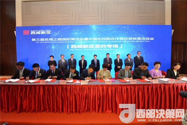 西部決策網——西部大開發訊(記者張靜 張永軍)5月10日,正值第三屆絲綢之路國際博覽會暨中國東西部合作與投資貿易洽談會開幕之際,西咸新區舉辦專場簽約活動,現場簽訂項目32個,合同總額達744億元。作為國家級新區和大西安新中心新特區,西咸新區率先亮相引起海內外廣泛關注。