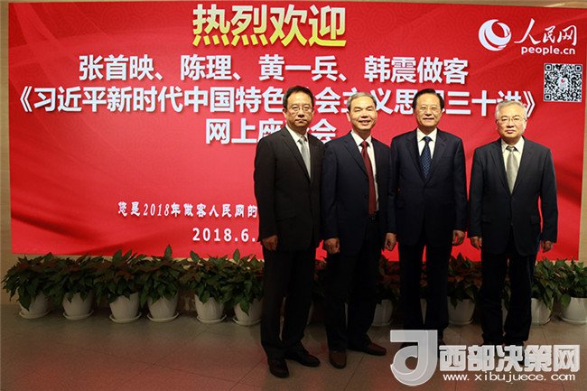 各位網友大家好,這里是《習近平新時代中國特色社會主義思想三十講》網上座談會現場。中共中央宣傳部組織編寫的《習近平新時代中國特色社會主義思想三十講》一書,近日由學習出版社出版,并在全國各地新華書店開始發行。為了幫助廣大干部群眾學好用好《習近平新時代中國特色社會主義思想三十講》這一重要輔助讀物,進一步興起學習貫徹習近平新時代中國特色社會主義思想新高潮。中共中央宣傳部理論局和人民網強國論壇聯合主辦了《習近平新時代中國特色社會主義思想三十講》系列網上座談會。今天我們是網上系列座談會的第一場,為大家請到四位老師和我們一起來分享。